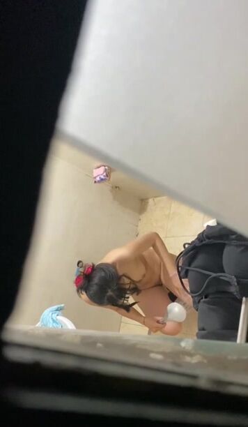 企業保安偷窺剛下班的嫩妹宿舍洗澡